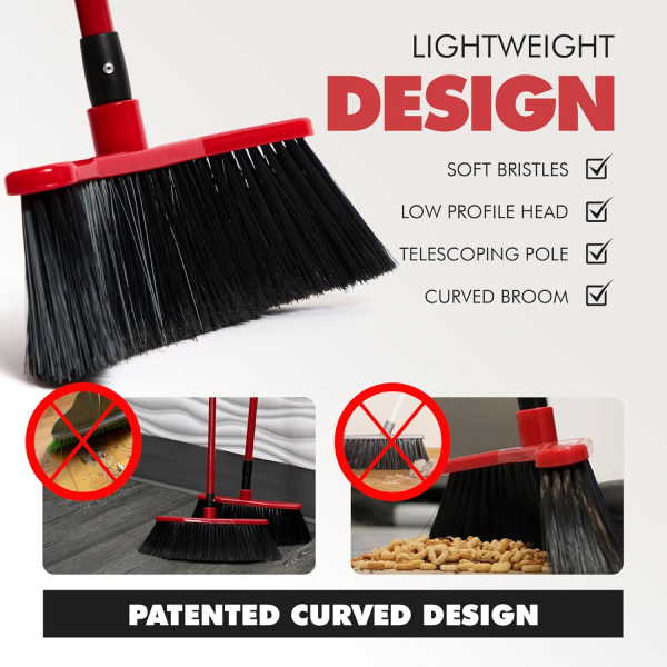 Da Vinci Brooms make everyday cleaning effortless. The curved ends guide dust and crumbs to the center—no more side spills. With a slim, low-profile head that glides under furniture and flared edges that reach into corners, every sweep feels smooth and satisfying. Lightweight and adjustable, it’s easy on your hands and built to get the job done fast.