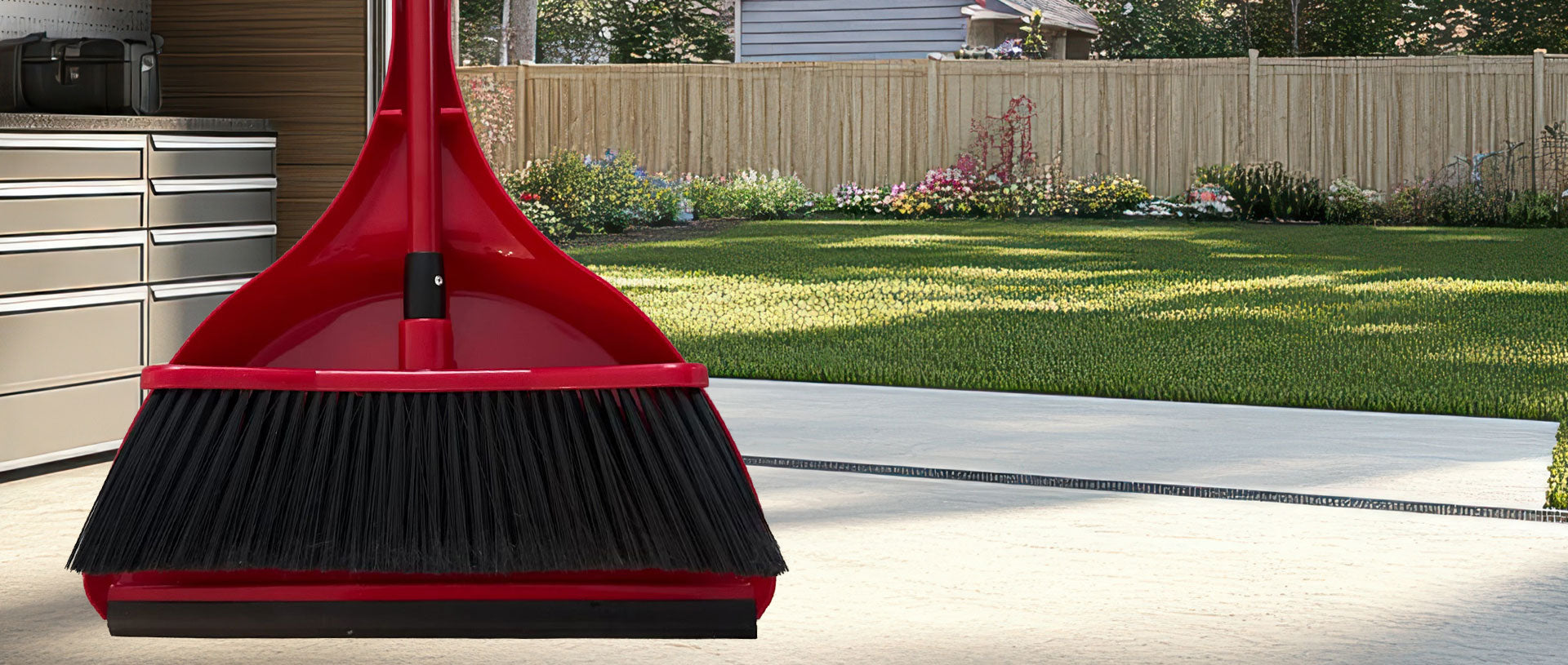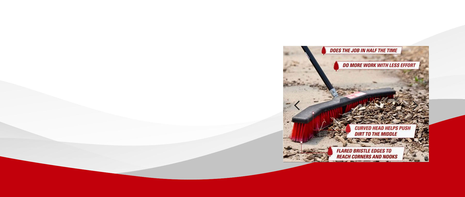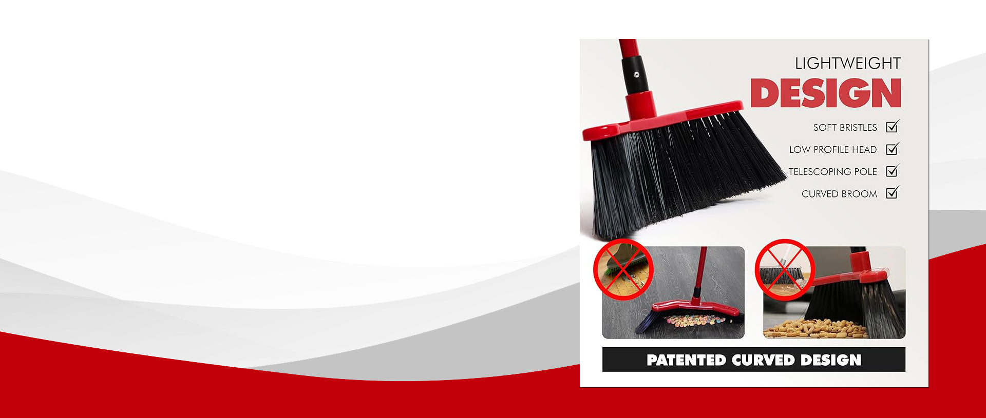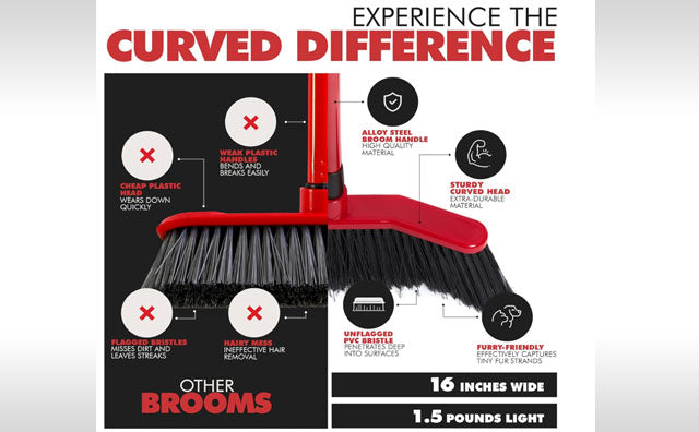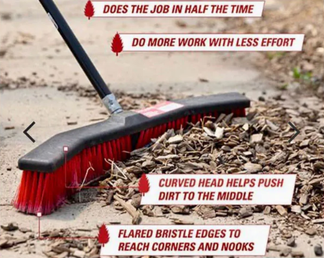 Our sleek, patented curved brooms efficiently funnel dirt and debris into a neat pile every time!